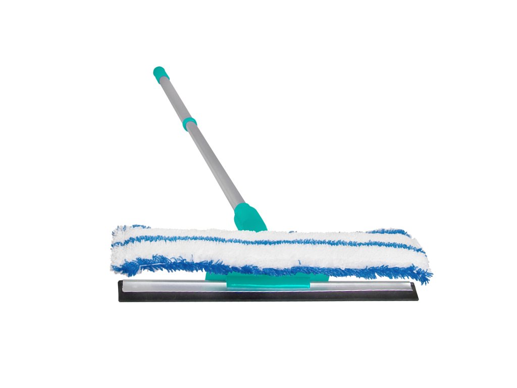 - Double-sided head – soft microfiber cover for washing + rubber squeegee for streak-free wiping